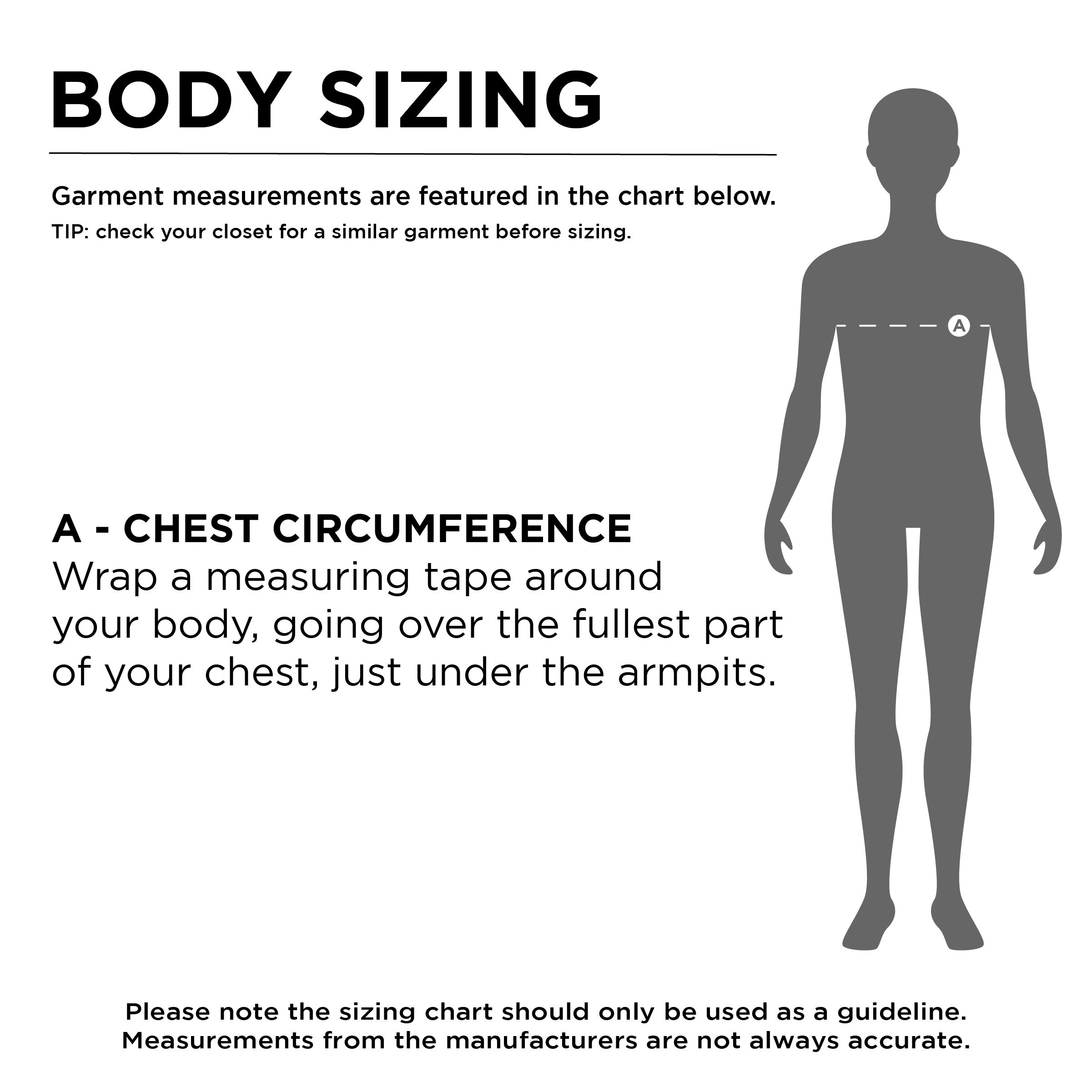 | Chest | 29"-32" | 33"-36" | 37"-40" | 41"-44" | 45"-48" | 49"-52" | 53"-56" | 57"-60" |